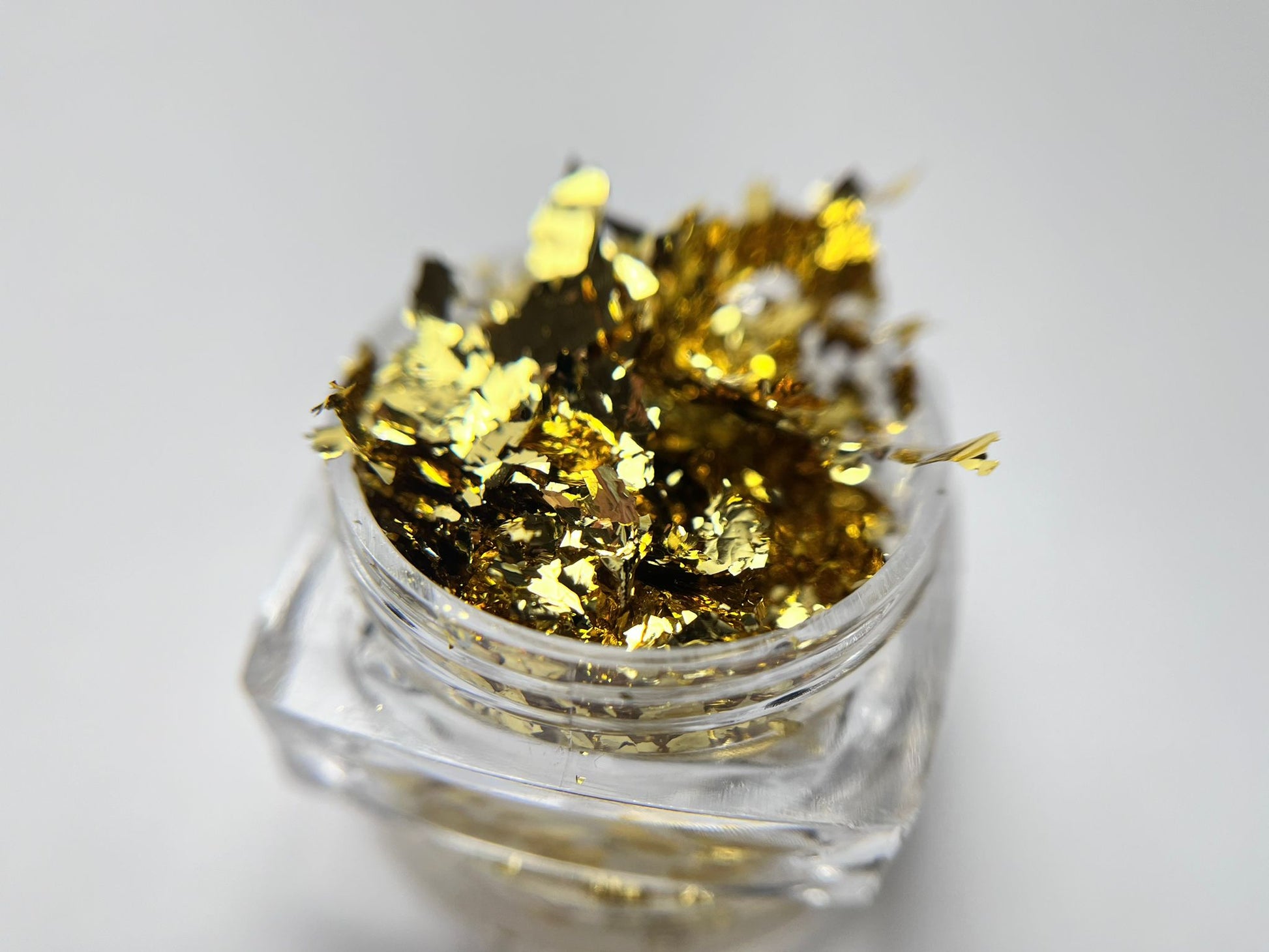 Gold Chrome Leaf es una lámina fina dorada para decoración de uñas, fina y delicada, con un efecto cromo-metálico.